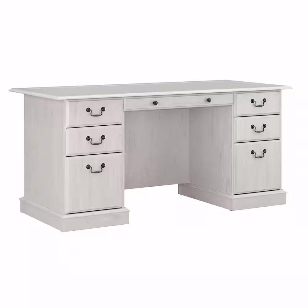Bush Furniture Saratoga 65.98 in. Rectangular Linen White Oak 6 Drawer Desk