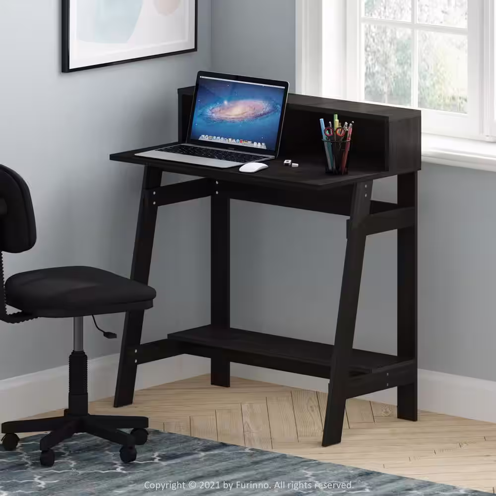 Furinno 32 in. Rectangular Espresso Computer Desk with Hutch