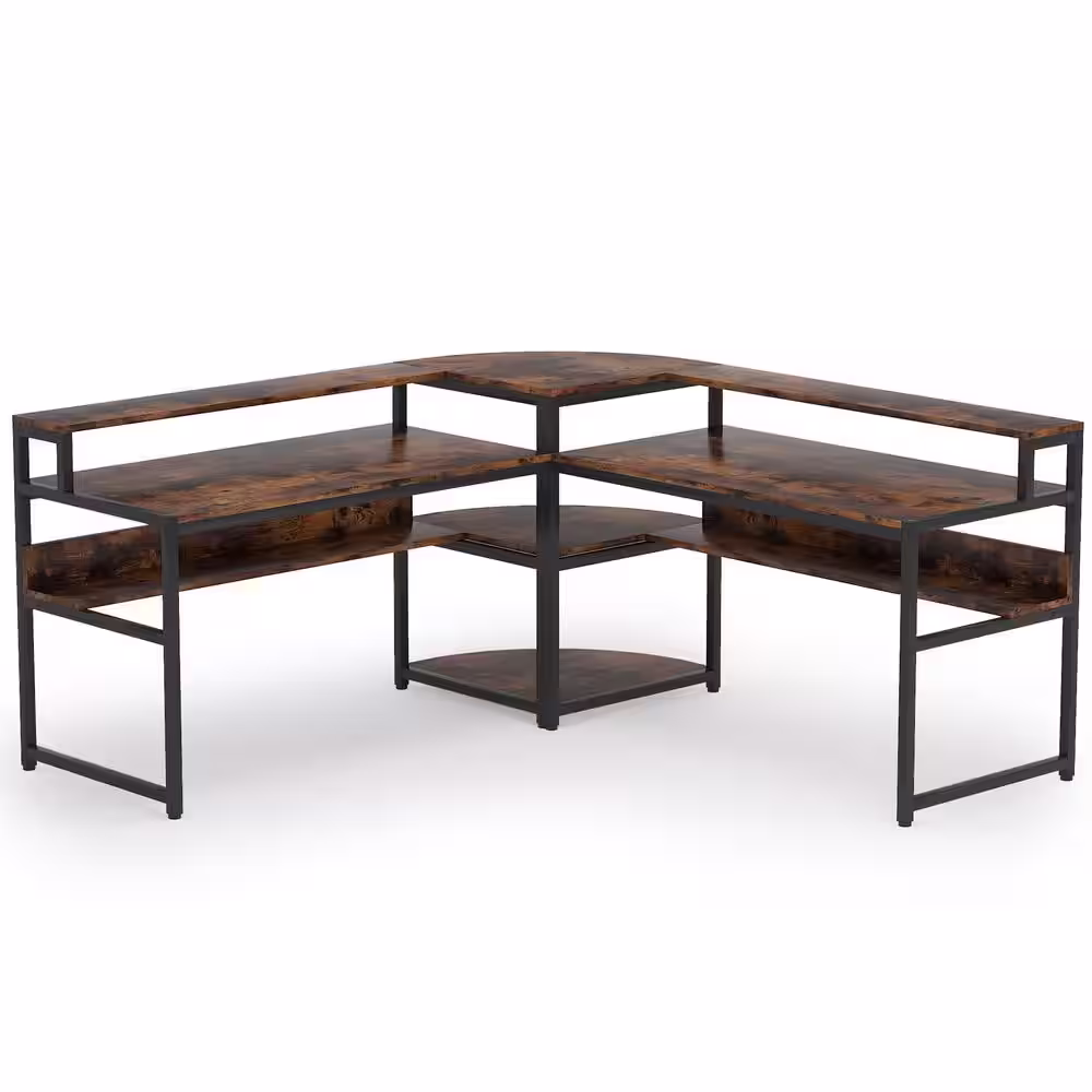 Tribesigns Lantz 66.9 in. L-Shaped Desk Brown Engineered Wood Computer Desk with Monitor Riser and Storage Shelf