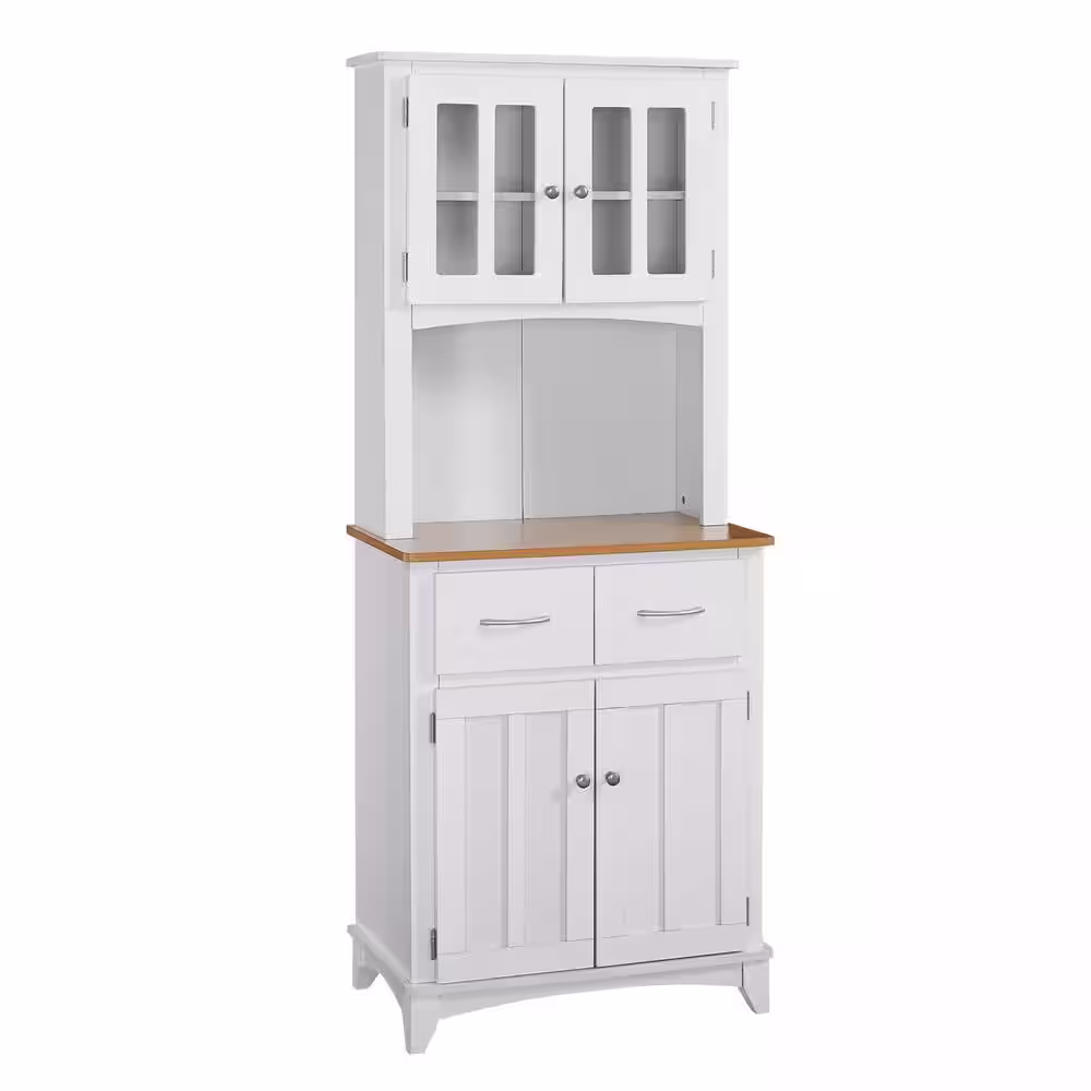 Home Source Industries Home Source White and Cherry Microwave Storage Stand with Double Door Top and Bottom Cabinets