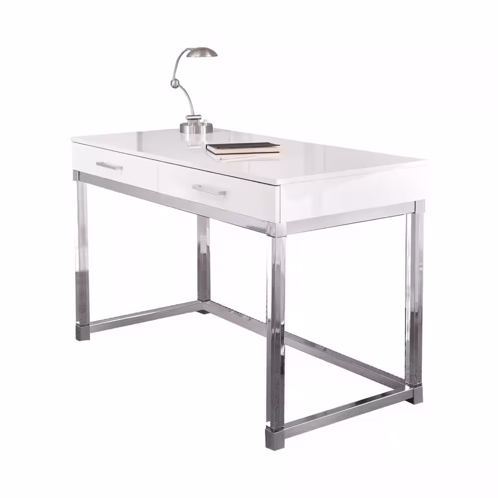 Steve Silver Everett 47 in. Rectangular White 2-Drawer Computer Desk with Chrome and Acrylic Accents