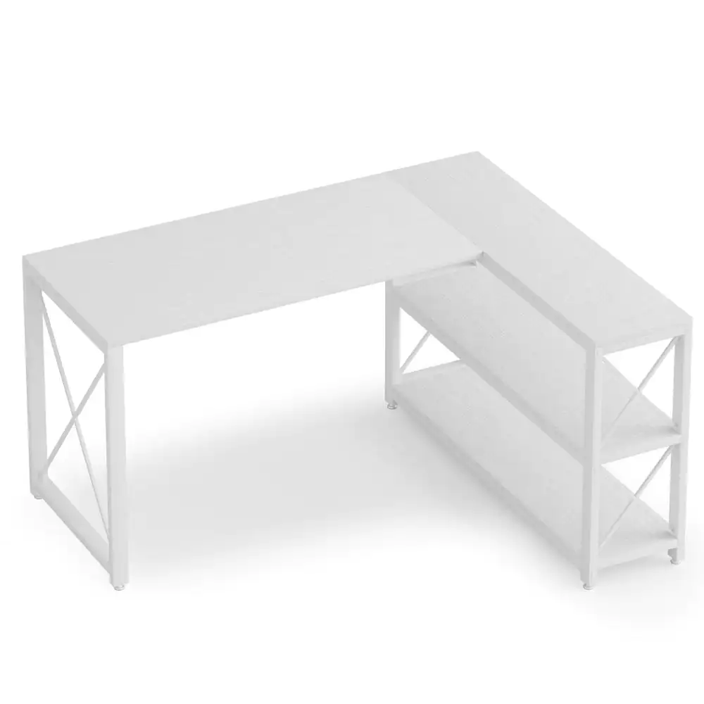 None Halseey 52.8 in. Reversible L-Shaped Desk White Wood Corner Computer Desk with Storage Shelves for Home Office