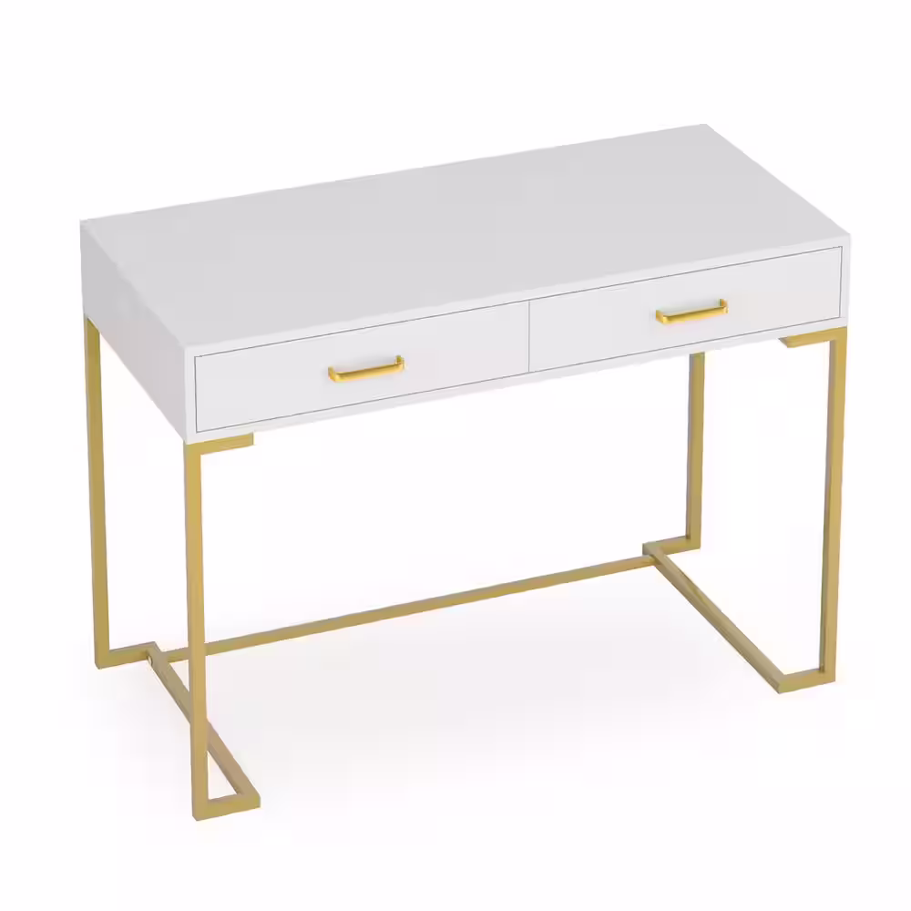 BYBLIGHT Moronia 39.37 in. W Retangular Gold and White 30 in. H Wood Computer Desk with 2-Drawer