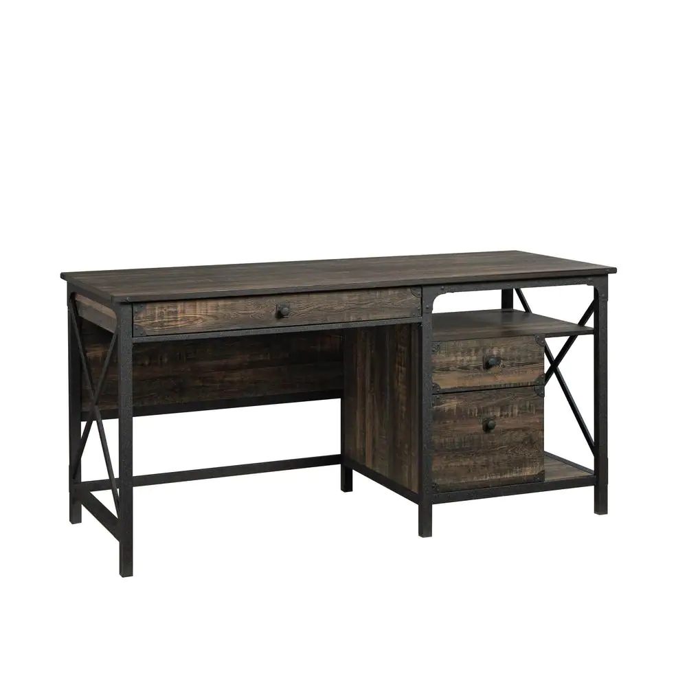 SAUDER Steel River 60.079 in. Carbon Oak Engineered Wood 3-Drawer Computer Desk with File Storage and Metal Frame