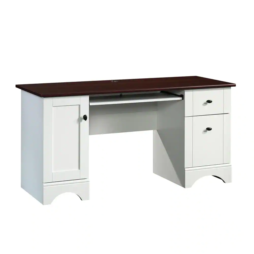 SAUDER 59.449 in. Rectangle Soft White Computer Desk with File Storage