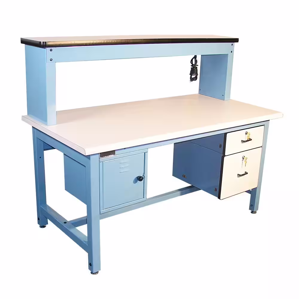 ProLine Bench in a Box 72 in. Rectangular Light Blue/White 2 Drawer Computer Desks with Locking Storage