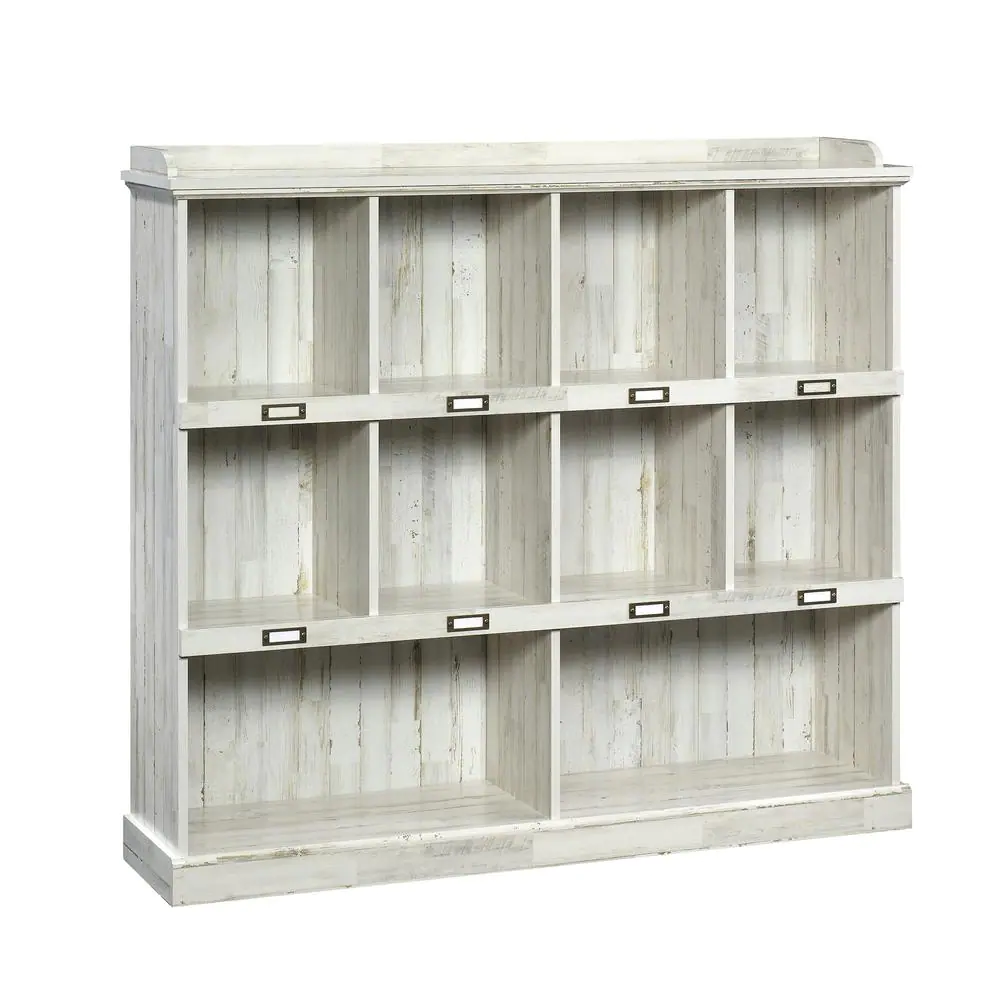 SAUDER 47.5 in. White Plank Faux Wood 11-shelf Standard Bookcase with Cubes