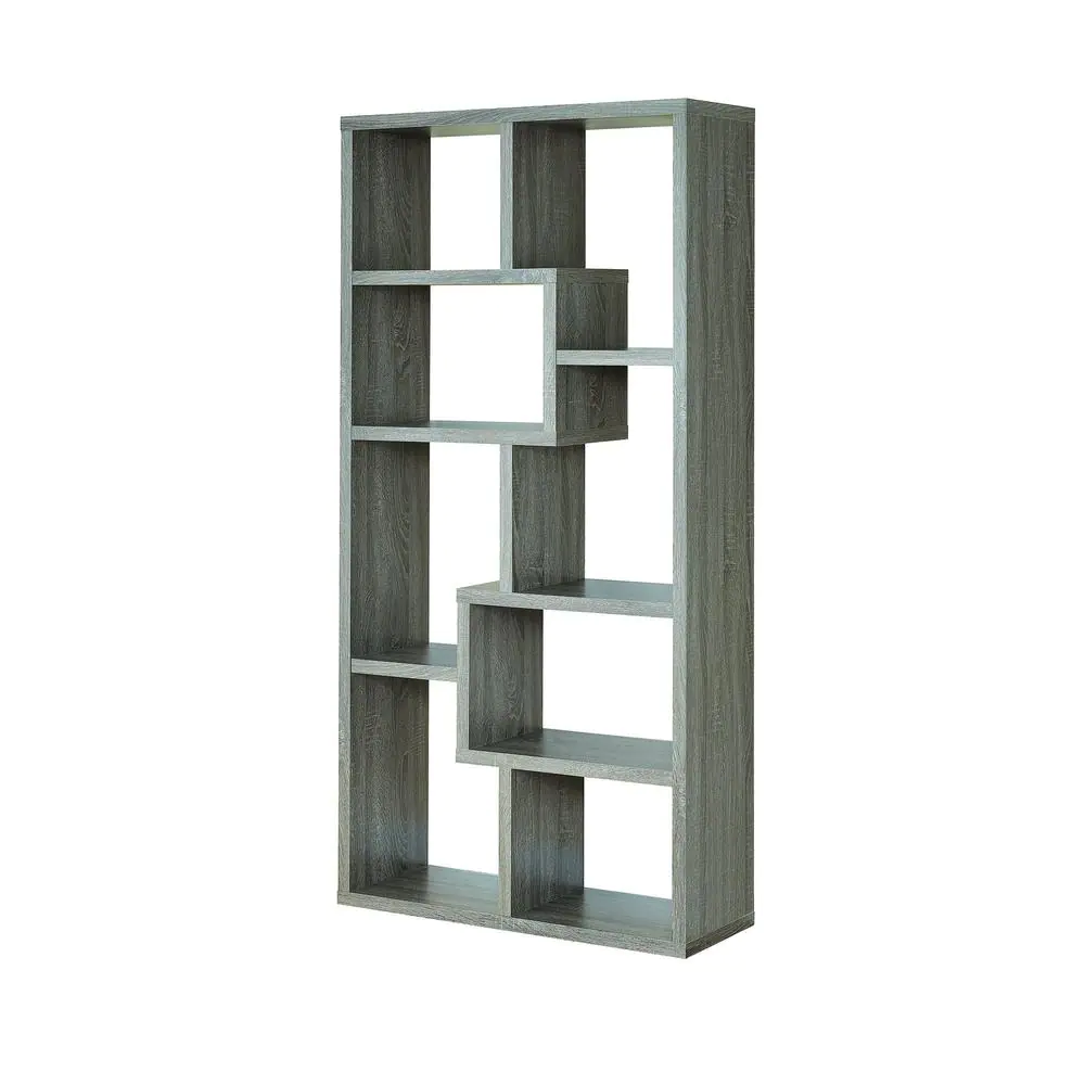 Coaster 71.88 in. Weathered Gray Wood 8-shelf Etagere Bookcase with Open Back