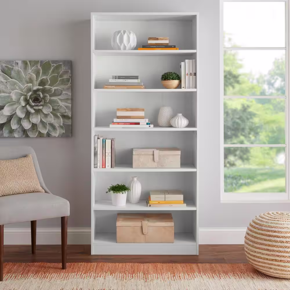 StyleWell Braxten 71 in. White 6-Shelf Basic Bookcase with Adjustable Shelves