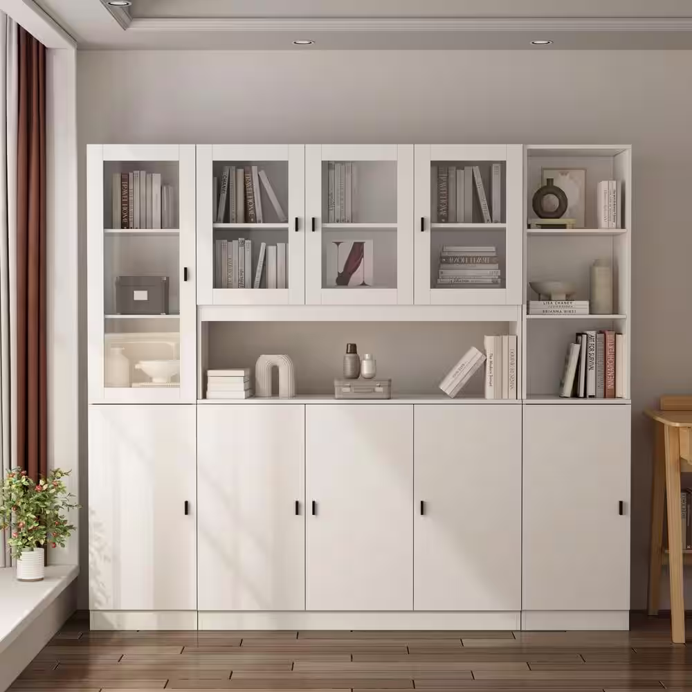 None 78.7 in. W x 12.2 in. D x 70.9 in. H 18-Shelf Wood Standard Bookcase Bookshelf With Glass Doors, Adjustable Shelves