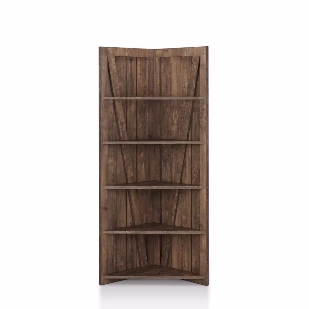 Furniture of America Helsa Reclaimed Oak 5-Shelf Corner Display Bookcase