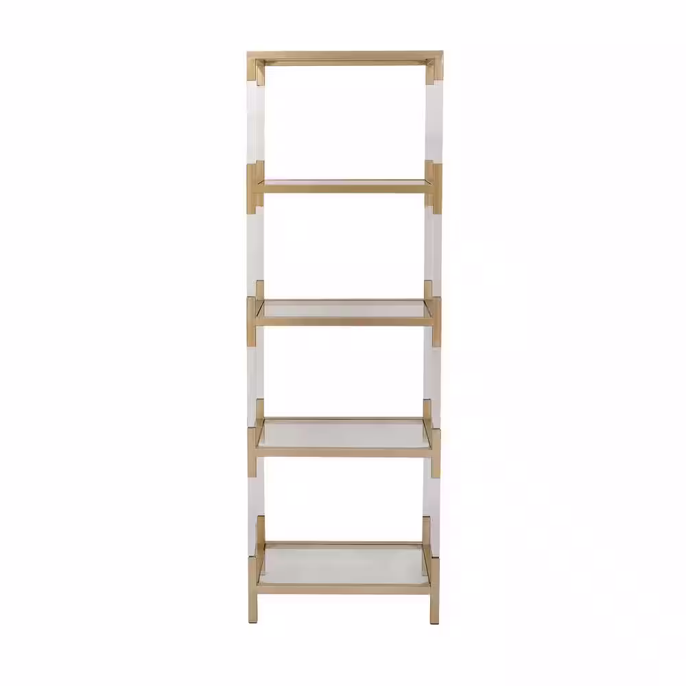 Litton Lane 5 Shelves Acrylic Stationary Gold Shelving Unit with Clear Glass Top and Acrylic Legs
