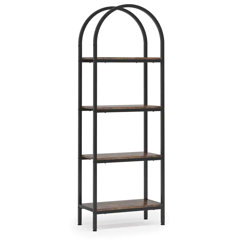 TRIBESIGNS WAY TO ORIGIN Jannelly 23.62 in. Brown Wood and Black Metal 4tier Radial Corner Shelves Bookcase Storage Rack Plant Stand