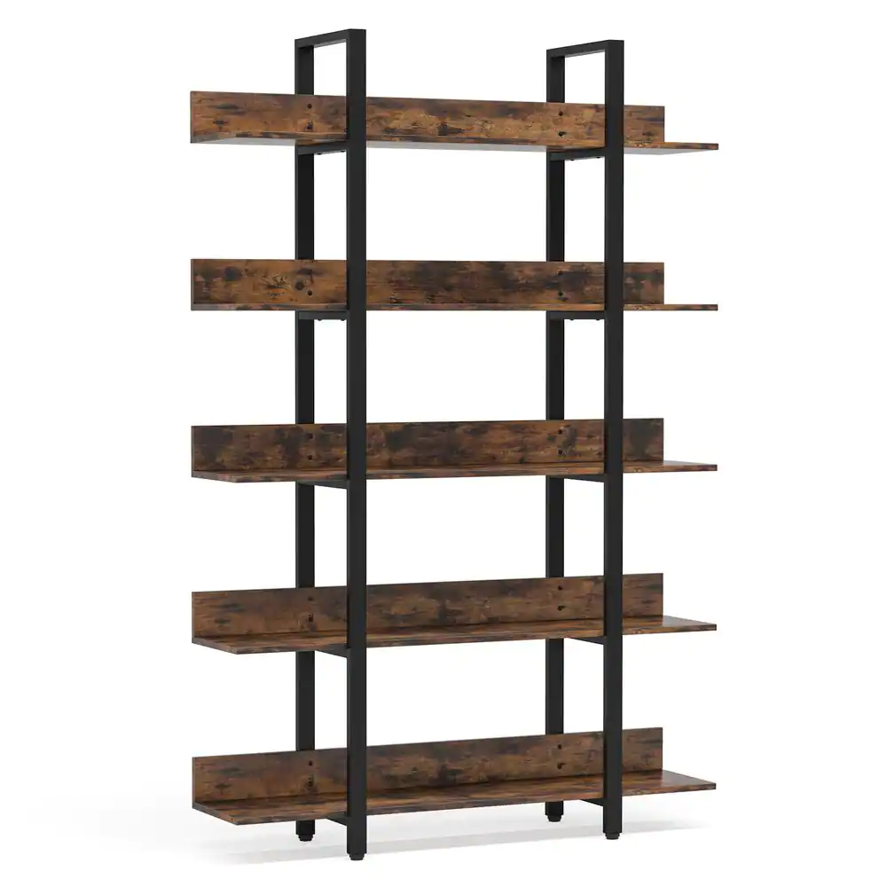TRIBESIGNS WAY TO ORIGIN Bingo 71.6 in. Rustic Brown Wood 5-Shelf Etagere Bookcase with Back Fence