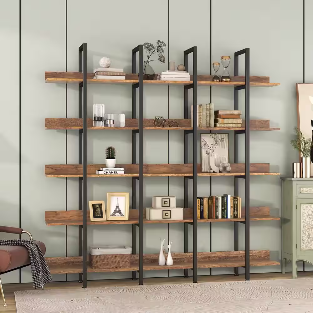 TRIBESIGNS WAY TO ORIGIN Perry 47.2 in. Wide Rustic Brown 5-Shelf Etagere Bookcase with Open Back