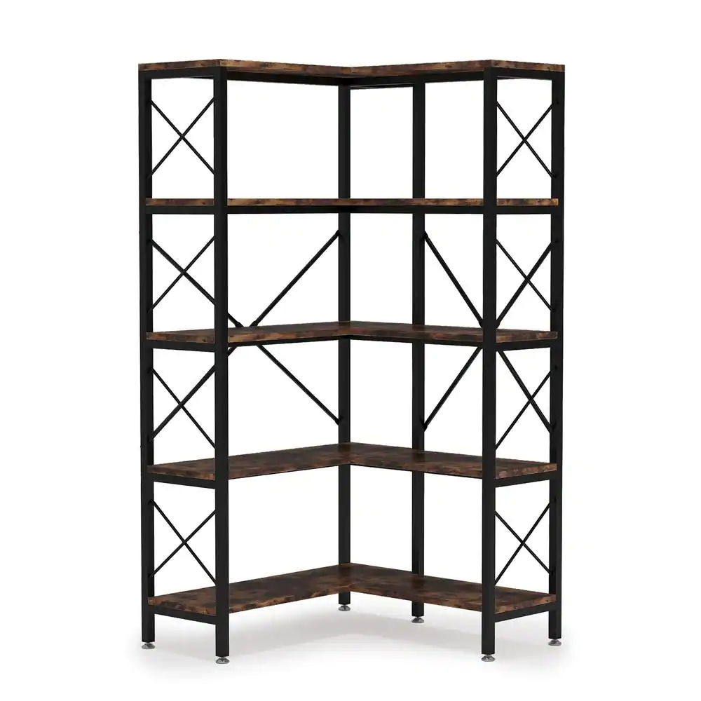 None Eulas 65.74 in. Black/Brown Engineered Wood 5-Shelf Standard Corner Bookcase with Storage Display Rack for Living Room