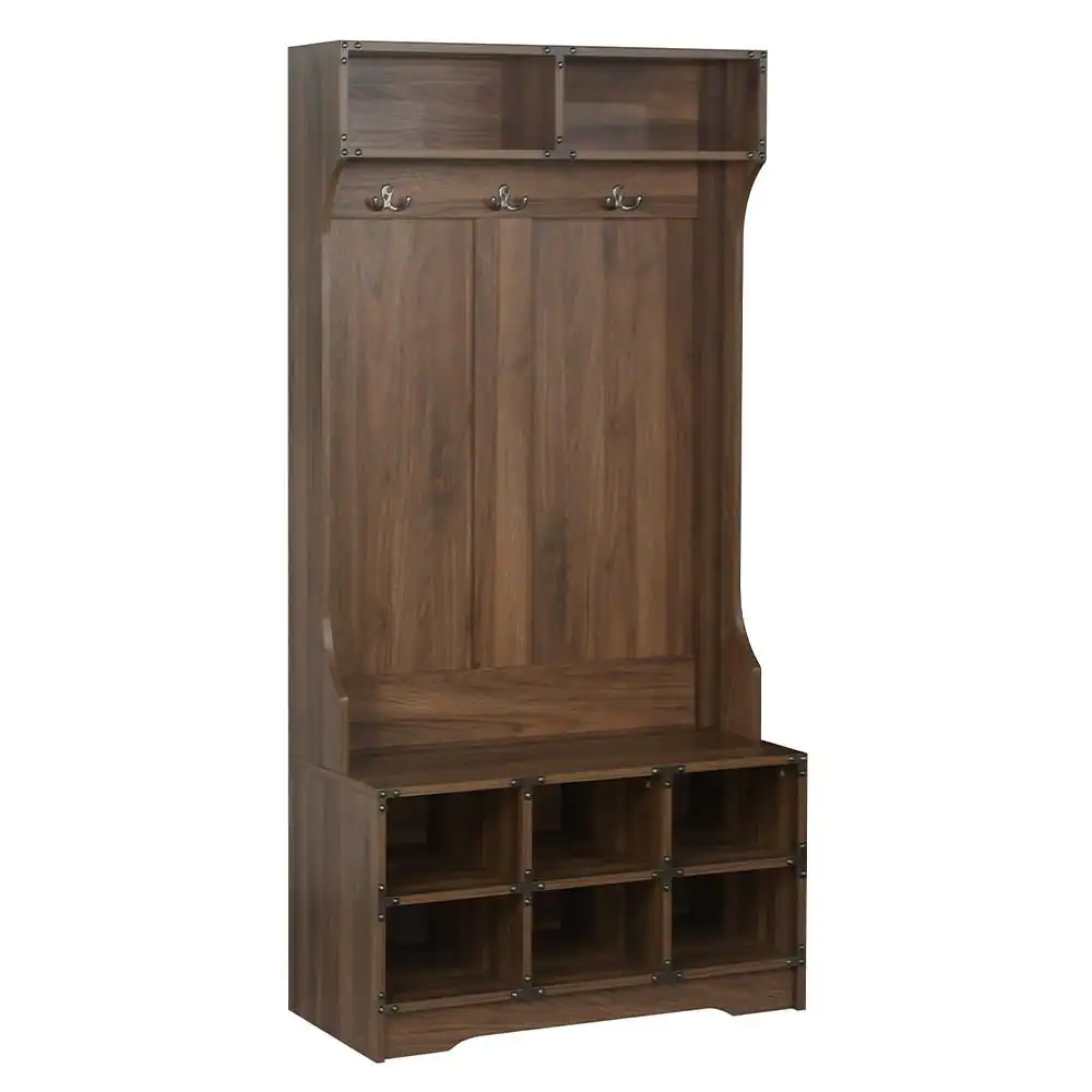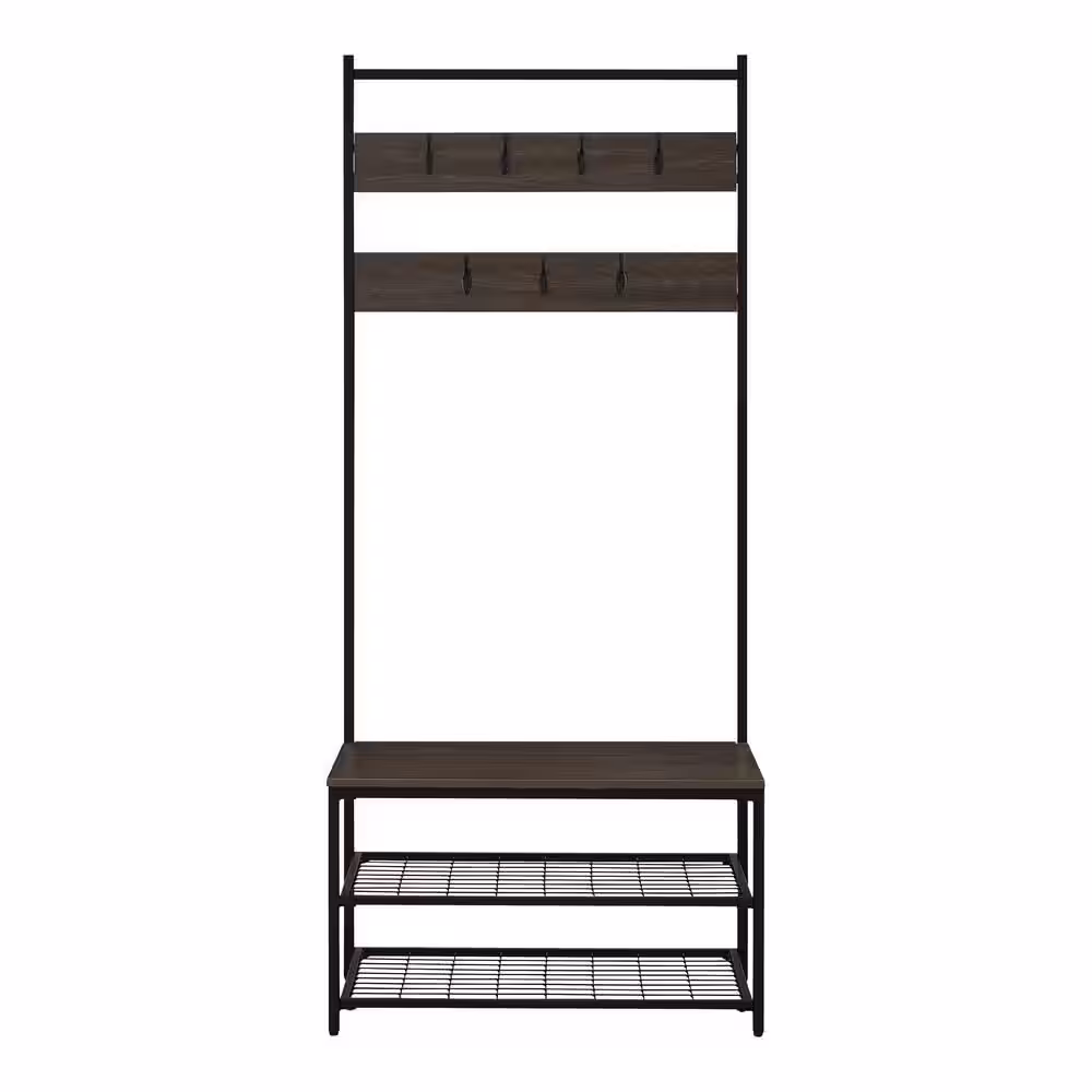 StyleWell Black Metal and Walnut Wood Seat Hall Tree