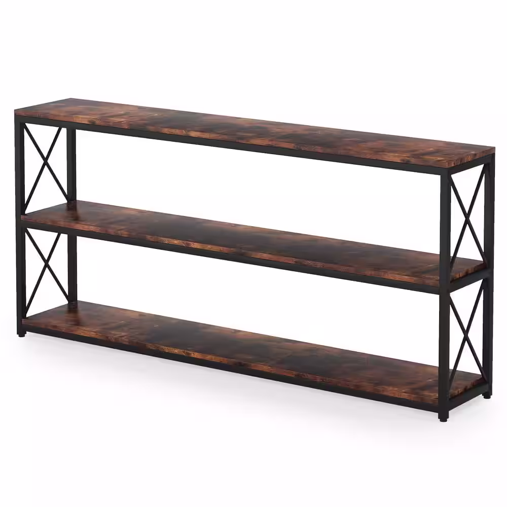 TRIBESIGNS WAY TO ORIGIN Bulgari 70.89 in. Rustic Brown Wood Console Table Sofa Table with 3-Open Storage Shelves