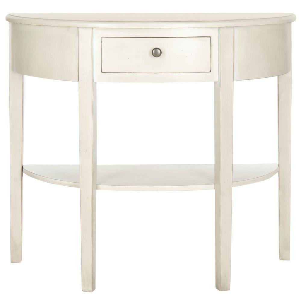 SAFAVIEH Abram 34 in. White Birch Standard Half Moon Wood Console Table with 1-Drawer