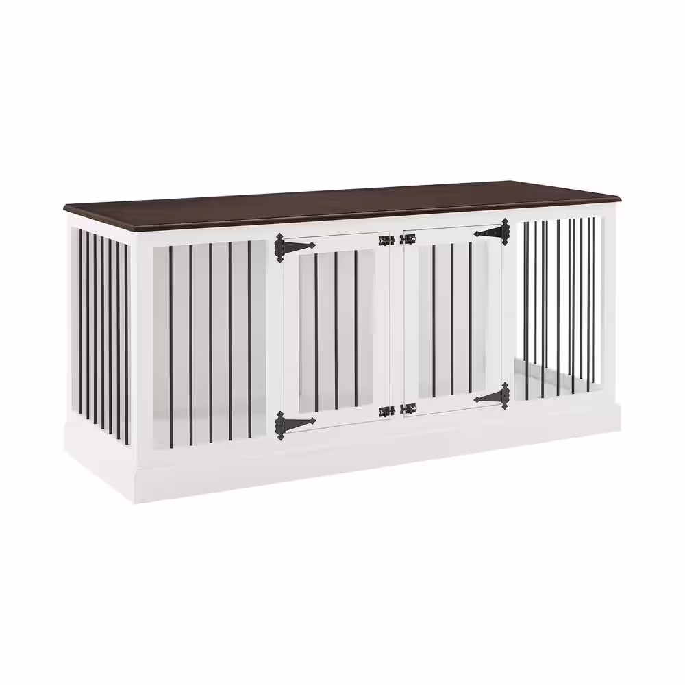 CROSLEY FURNITURE Winslow 65 in. White Standard Rectangle Wood Top Credenza with Pet Storage