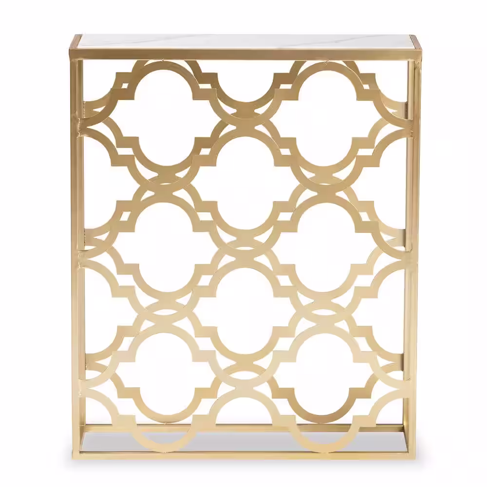 Baxton Studio Calanthe 24 in. Marble White and Gold Rectangle Marble Console Table