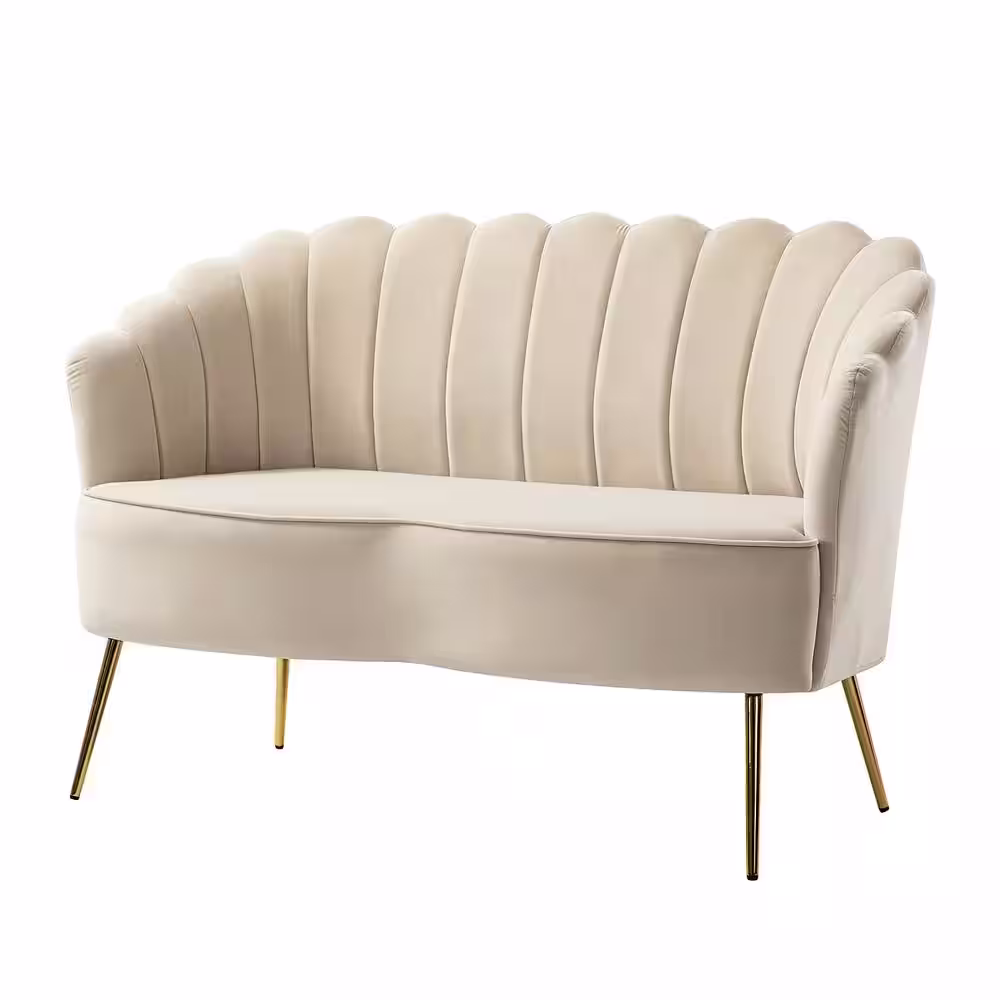 JAYDEN CREATION Yeran Velvet 52 in. Tan 2-Seats Loveseat with Flower Shaped Back Design