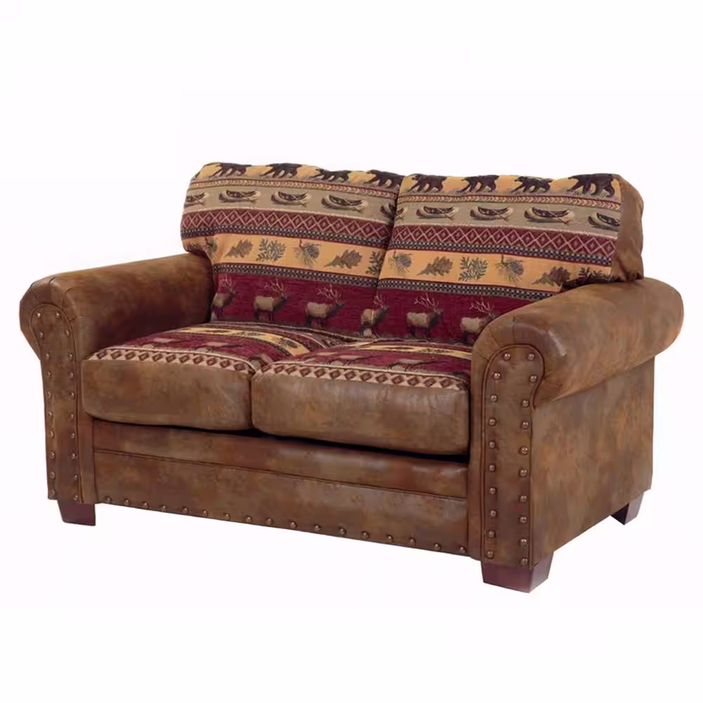 American Furniture Classics Sierra Lodge 67 in. Brown/Rust Pattern Microfiber 3-Seater Loveseat with Nailheads
