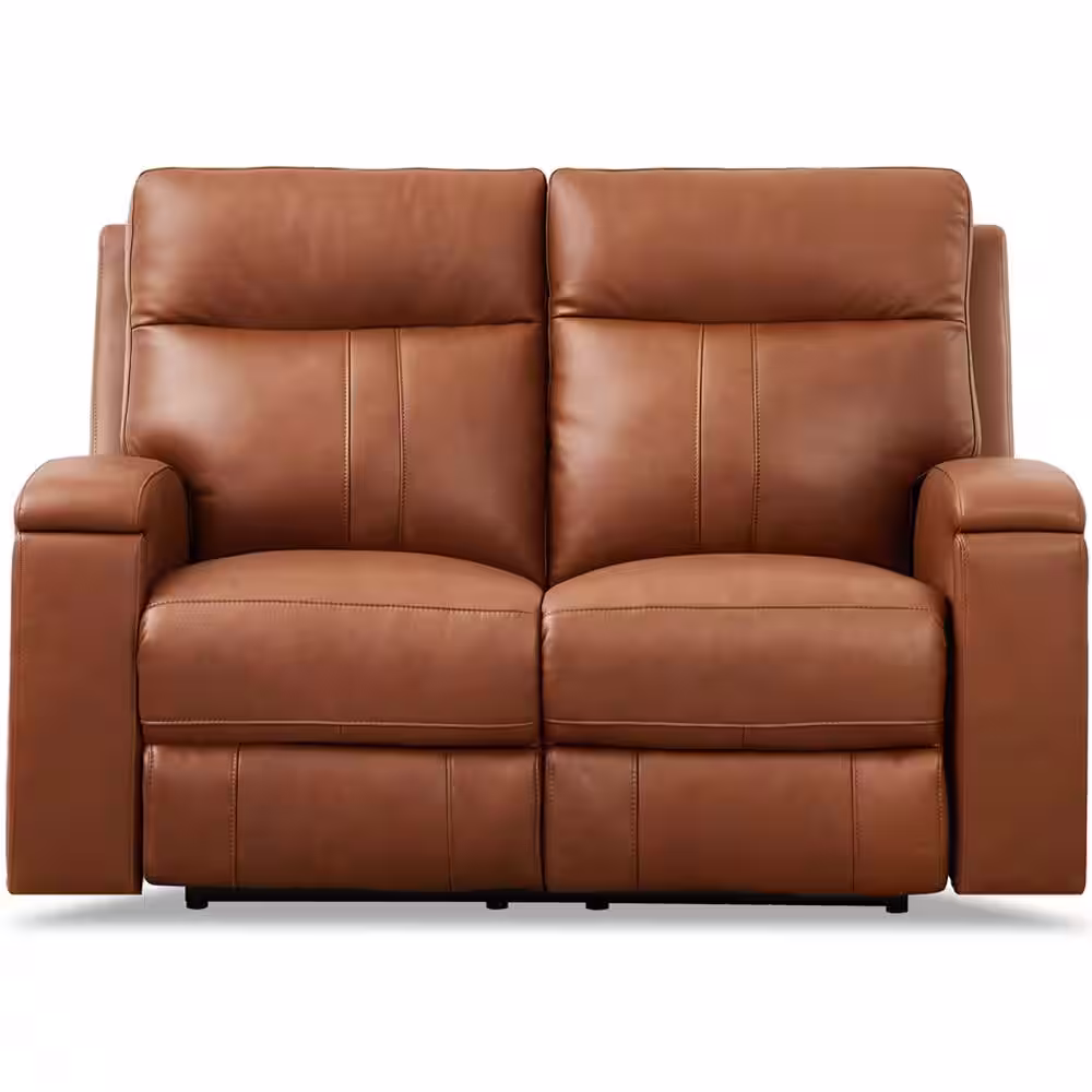 Hydeline Venice 62 in. Cinnamon Brown Top Grain Leather Zero Gravity Power Reclining Loveseat with CupHolder & Built-in USB ports