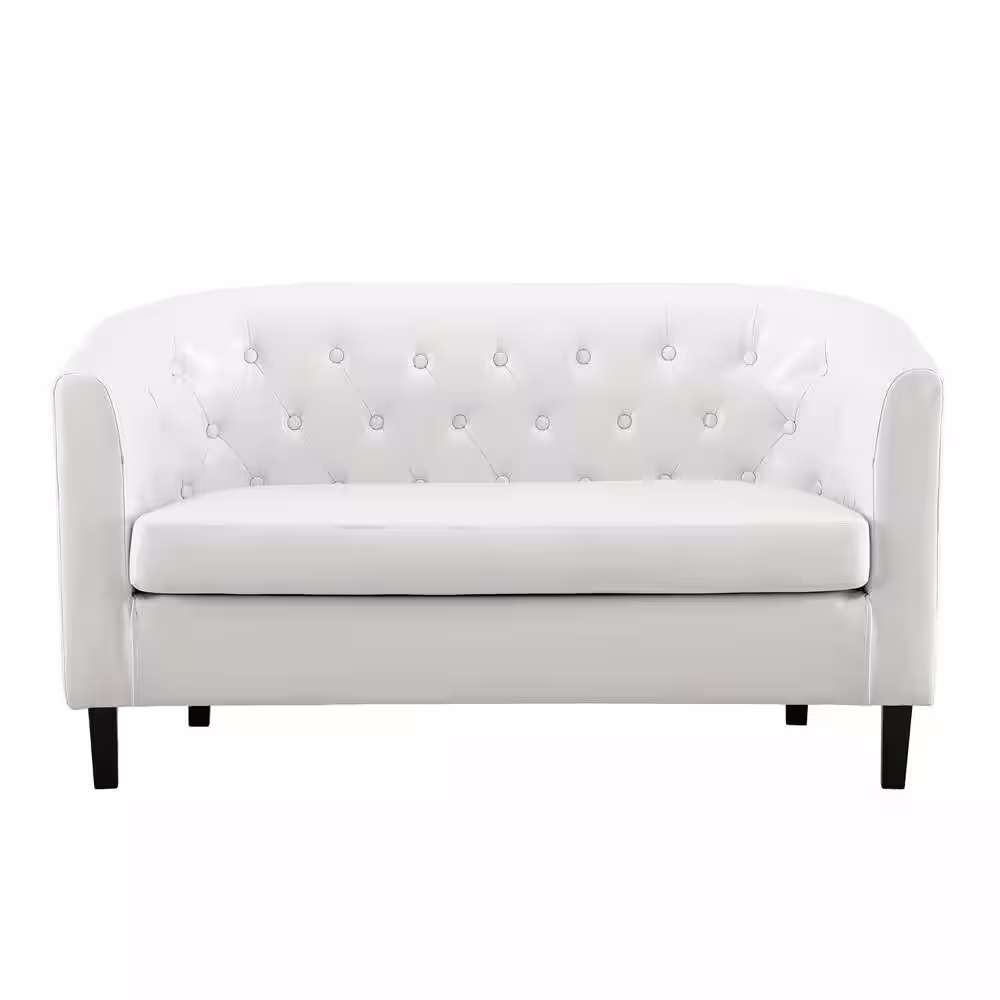 HOMESTOCK White Love Seat, Button Tufted Faux Leather Barrel Loveseat, Midcentury Modern 2-Seater Couch, Small Loveseat