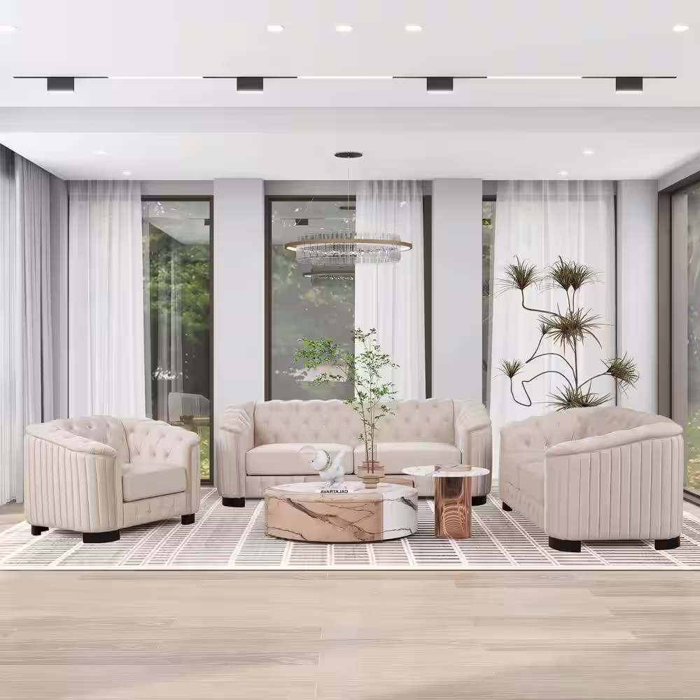Nestfair 3-Piece Beige Velvet Upholstered Living Room Set