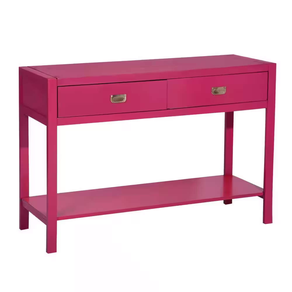 Homy Casa Bianca 44.3 in. Pink Standard Rectangle Wood Console Table with 2-Drawers