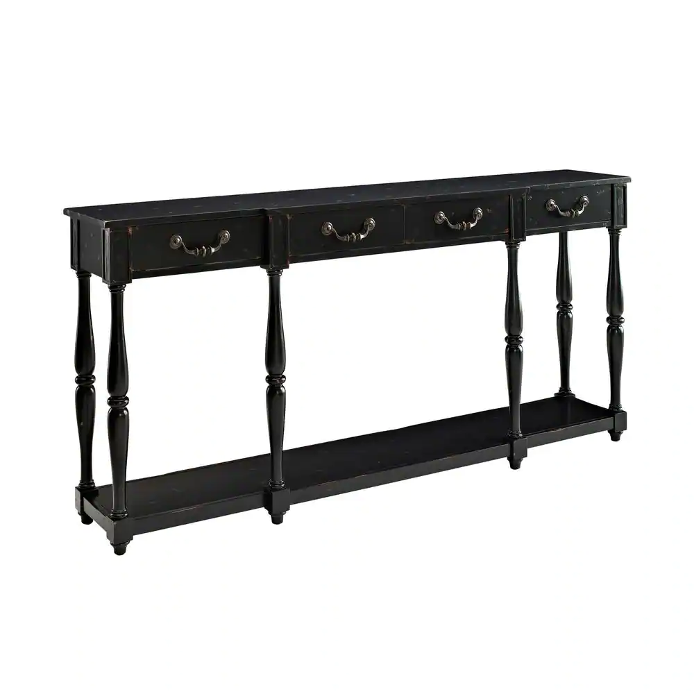 Powell Company 72 in. Black Standard Rectangle Wood Console Table with Drawers