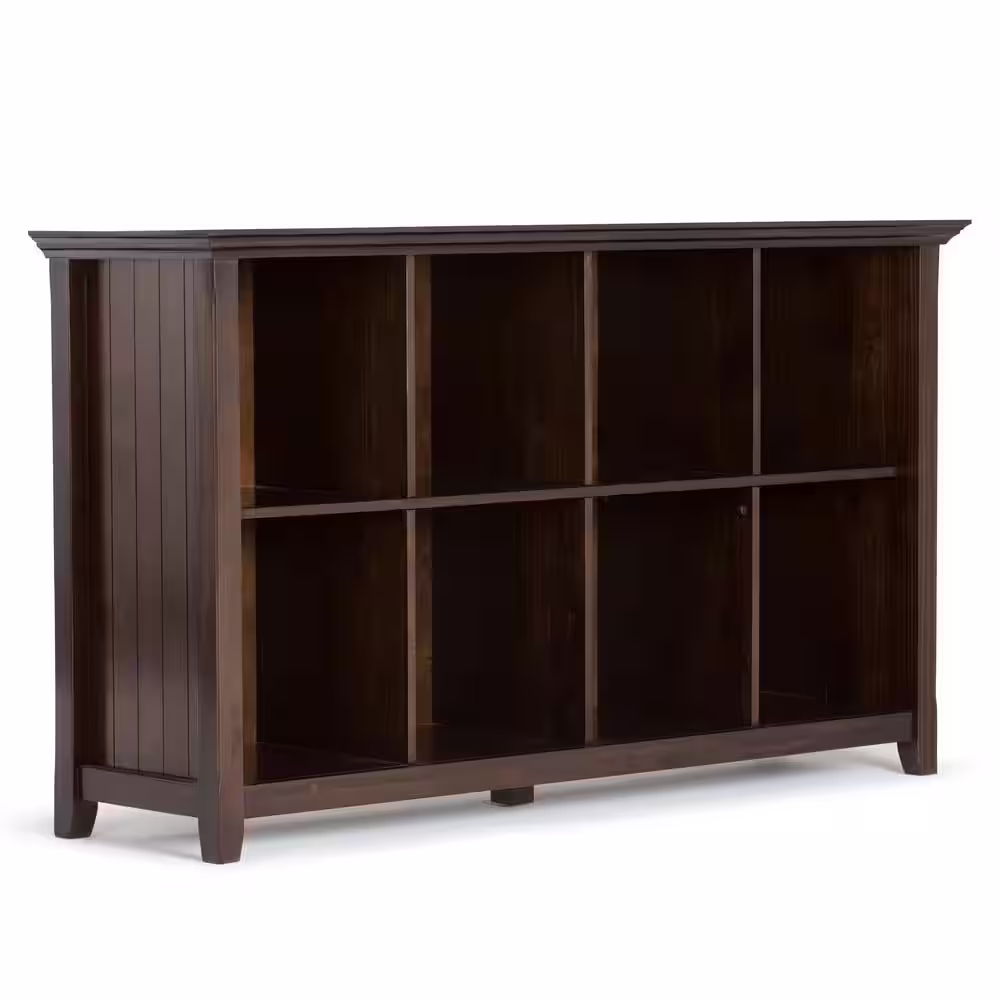 Simpli Home Acadian Solid Wood 57 in. Wide Transitional 8 Cube Storage Sofa Table in Brunette Brown