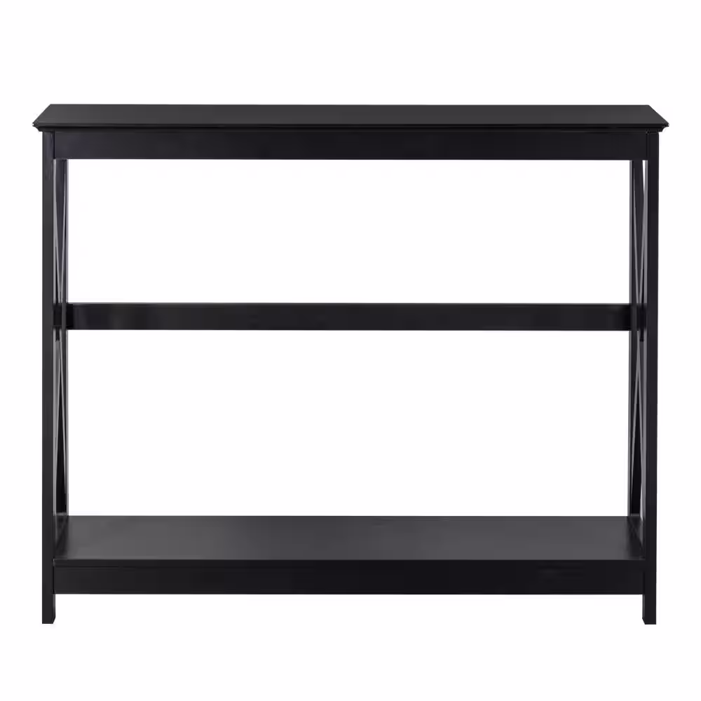 None 41.73 in. Standard Rectangle Black Wood Console Table with Shelves