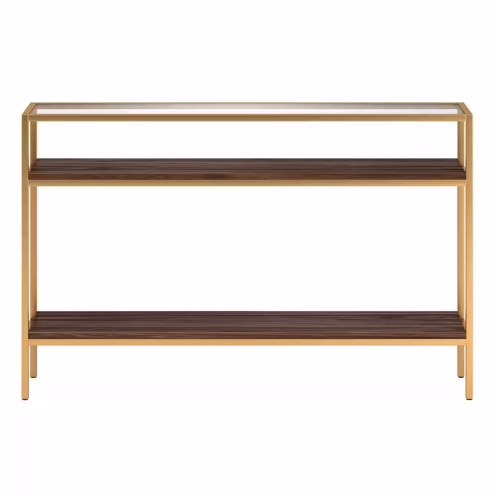 None Felicia 47.6 in. Gold Walnut Rectangle Glass Console Table
