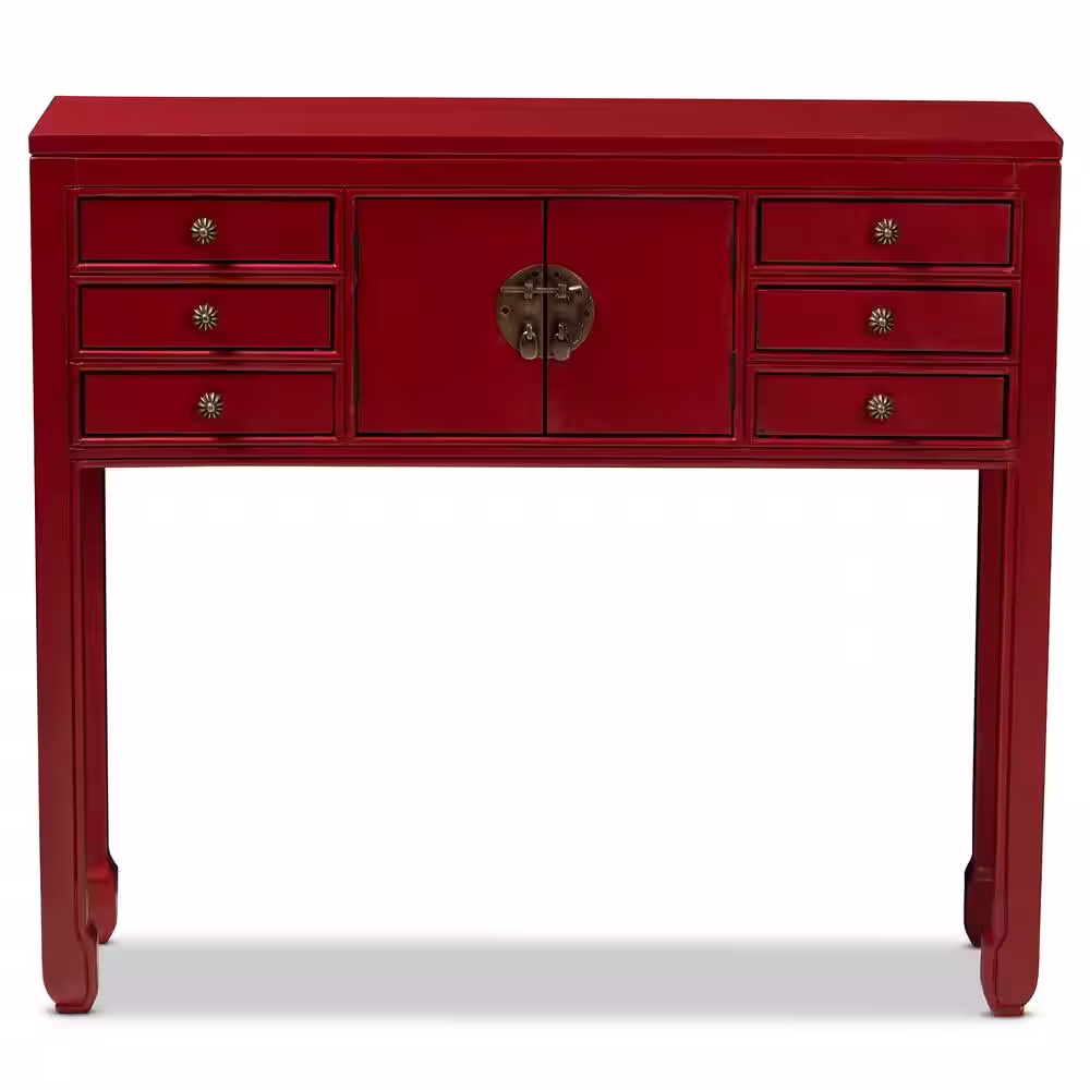 Baxton Studio Melodie 38 in. Red Standard Rectangle Wood Console Table with Drawers