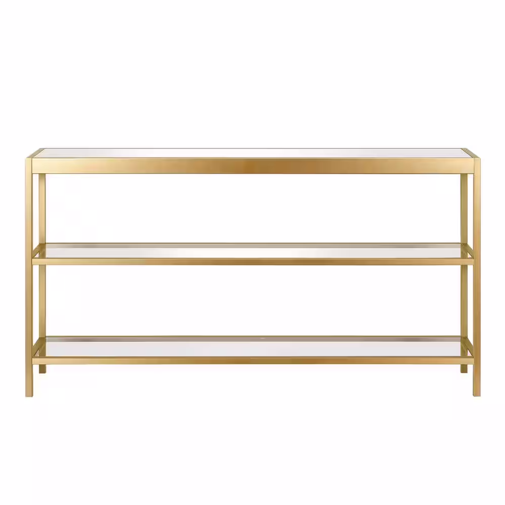 Meyer&Cross Alexis 55 in. Brass Rectangle Glass Console Table with Storage