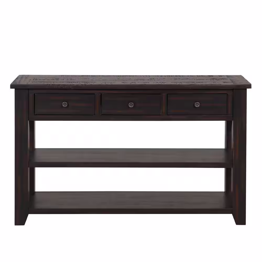 None 48 in. Black Rectangle Solid Pine Wood Top Console Table Entryway Sofa Side Table with 3 Storage Drawers and 2 Shelves
