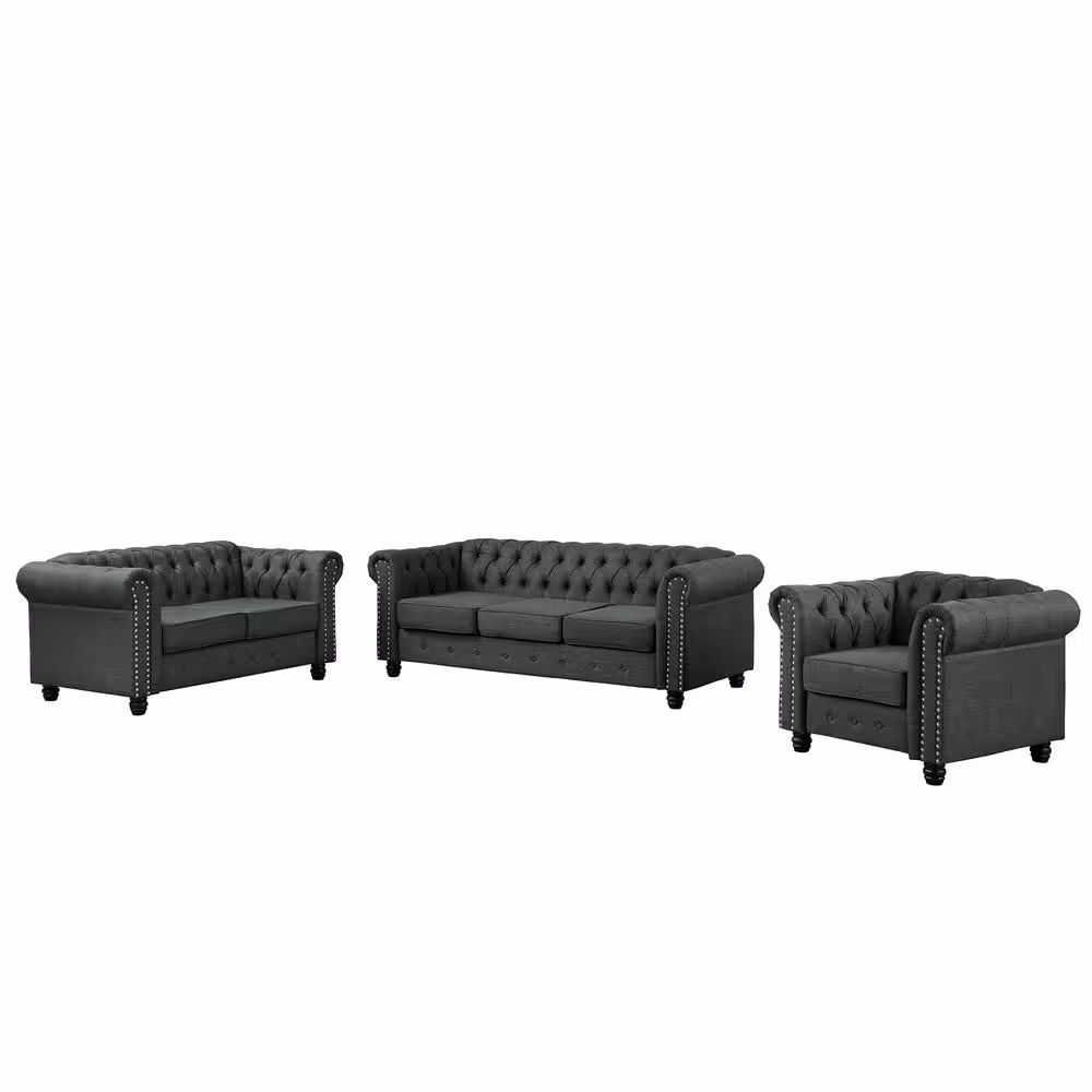 Morden Fort Linen Couches for Living Room Sets, Chair, Loveseat and Sofa 3-Pieces Top Gray