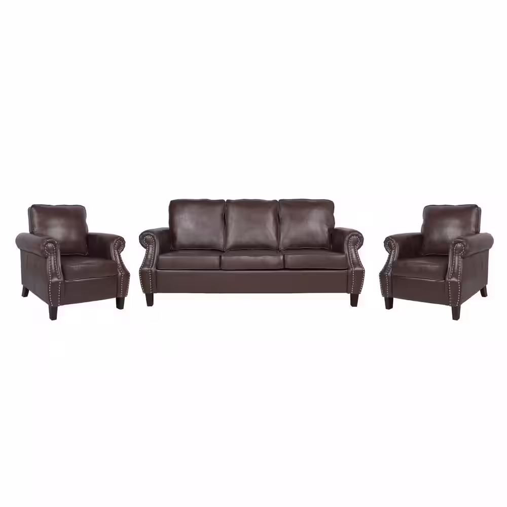 Noble House Amedou 3-Piece Faux Leather top Dark Brown Club Chair and Sofa Set