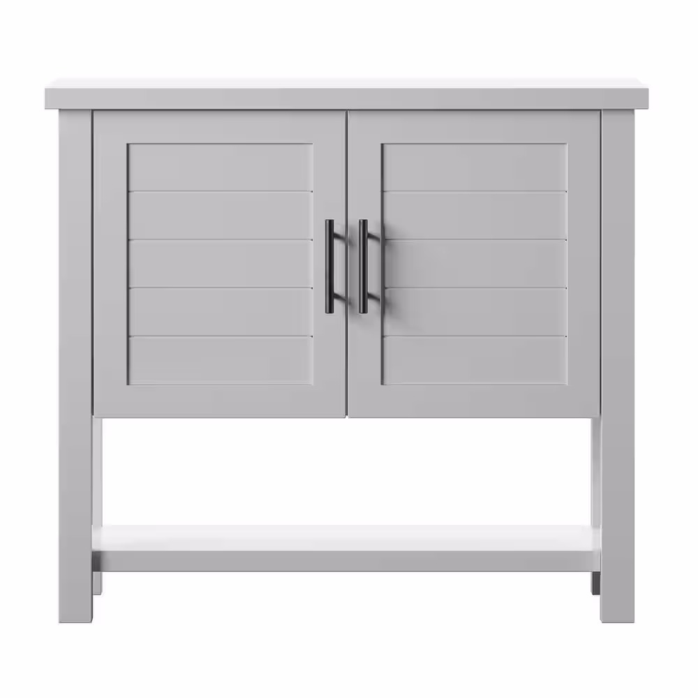 None 63 in. L Rectangle White Wooden Modern Console Table Sideboard With Pop-up Doors & Adjustable Shelves, Entryway Hallway