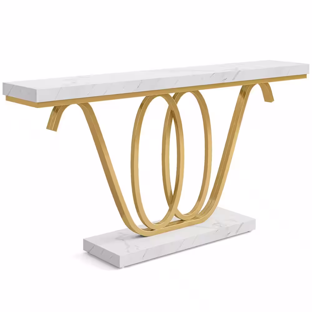 TRIBESIGNS WAY TO ORIGIN Benjamin 55 in. White Gold Rectangle Faux Marble Console Table Sofa Couch Foyer Modern Accent Entrance Entryway Table