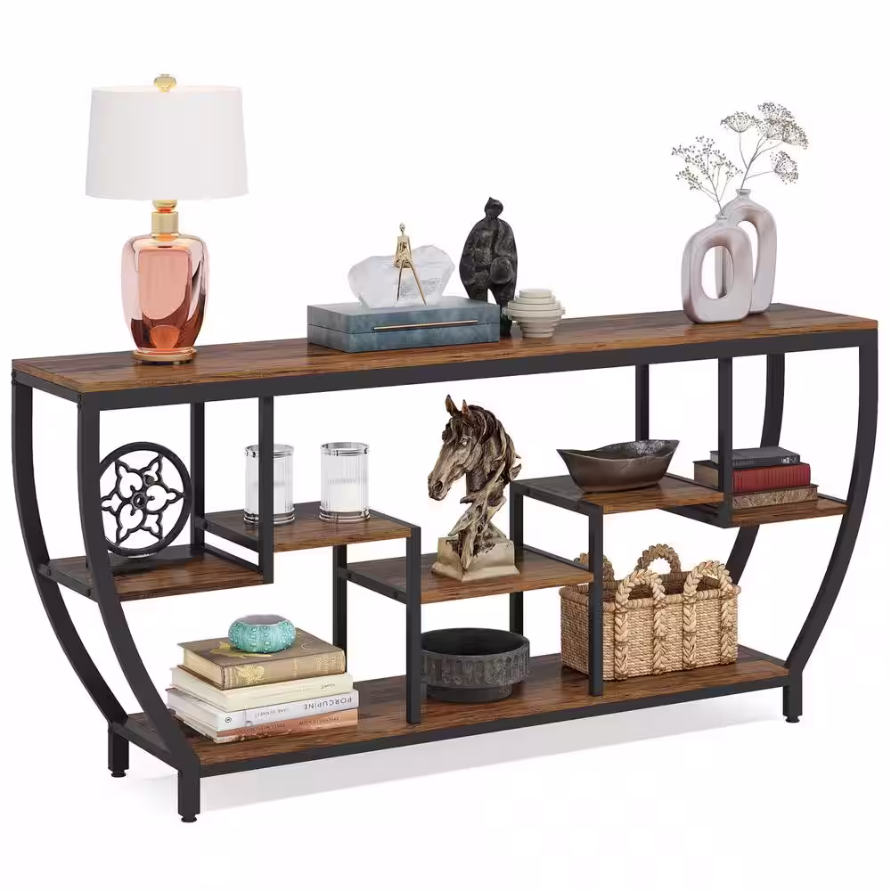 TRIBESIGNS WAY TO ORIGIN Benjamin 71 in. Brown Rectangle Wood Console Table with 3-Tier Storage, Extra Long Entryway Table Sofa Table