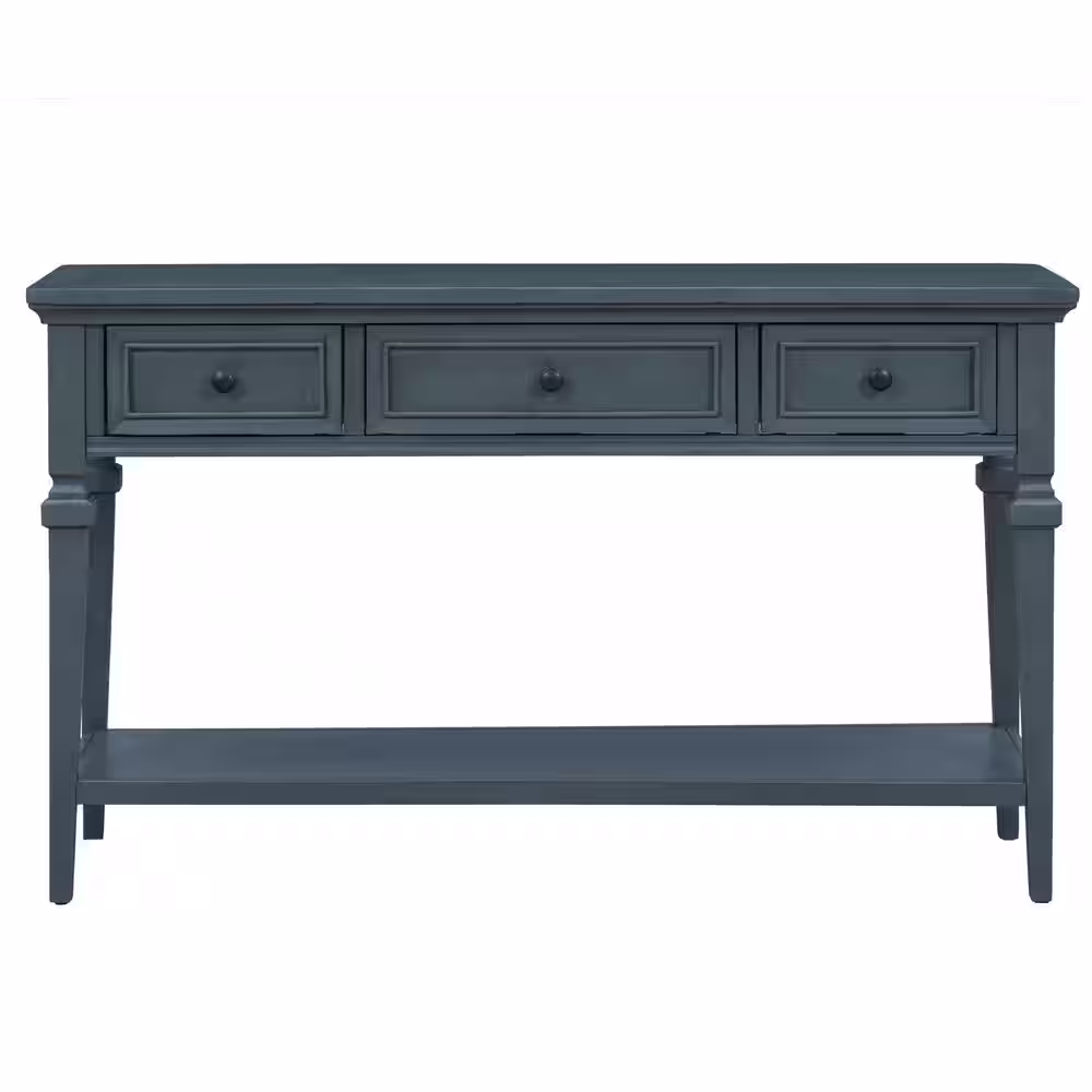 None Navy Blue 50 in. Rectangle Retro Console Table with 3-Drawers and Shelf Wood Entryway Sofa Table for Living Room