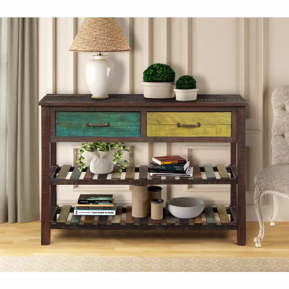 Harper & Bright Designs 45 in. Brown Standard Rectangle Wood Console Table with Drawers and 2-Shelves