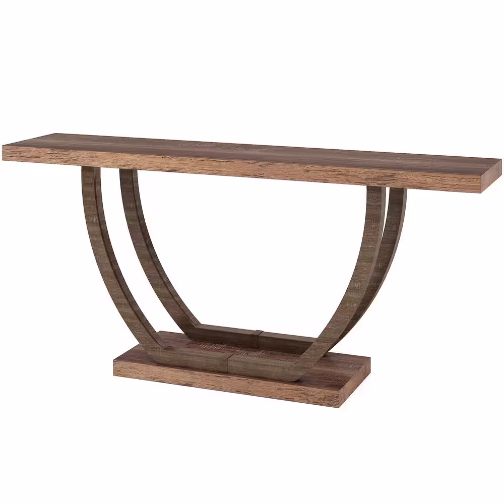 Tribesigns Catalin 63 in. Brown Rectangular Sofa Table Wood Console Table with 2-Tier Shelf