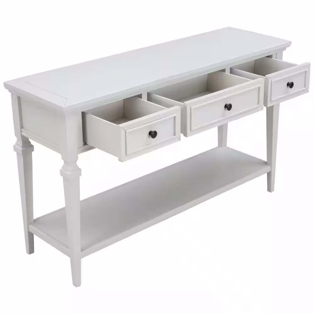None 50 in.Antique White Rectangle Wood Console Table with 3 Top Drawers and Bottom Shelf for Living Room, Entryway, Hallway