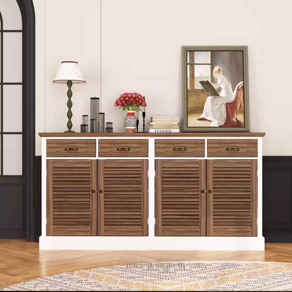 None 63 in. L Brown Rectangle Wooden Console Table Entry Table Shoe Storage With Shuttered Doors, Adjustable Shelves, Drawers