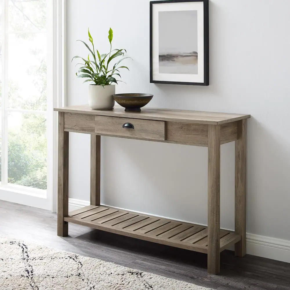 Walker Edison Furniture Company Country 48 in. Gray Wash Standard Rectangle Wood Console Table with Drawers