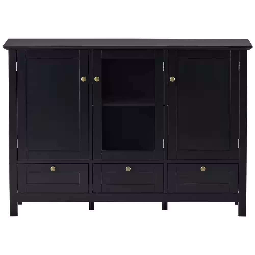 None 44.9 in. Black Rectangle Wood Console Table Modern Sideboard with 3 Doors and 3 Drawers for Living Room Dining Room
